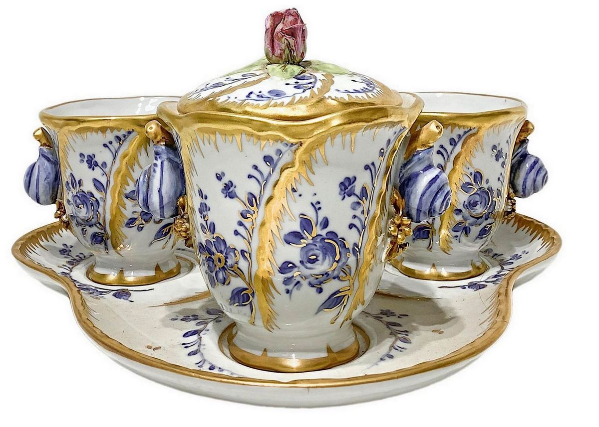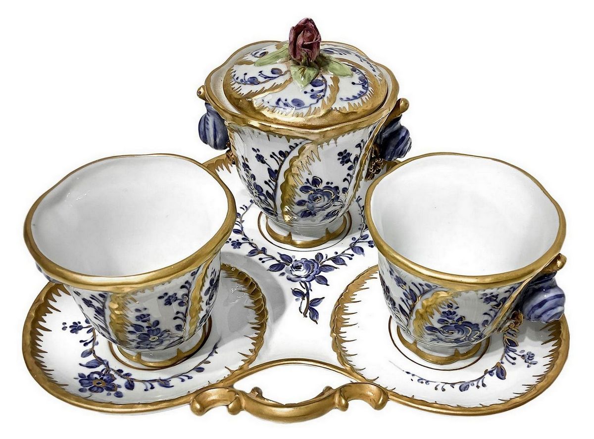 Servizio da caffè tete a tete, Manifattura Sevres. Con zuccheriera e vassoio, XX secolo.