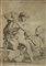 Salvator Rosa, incisione ad acquaforte a punta secca, raffigurante uomo con bastone e due personaggi seduti di cui uno d