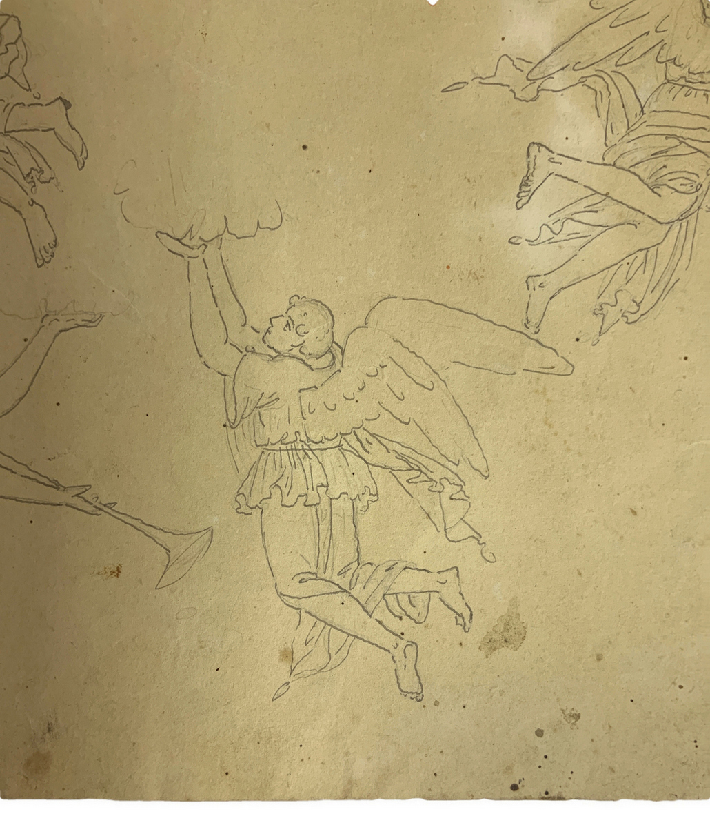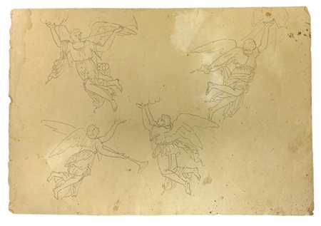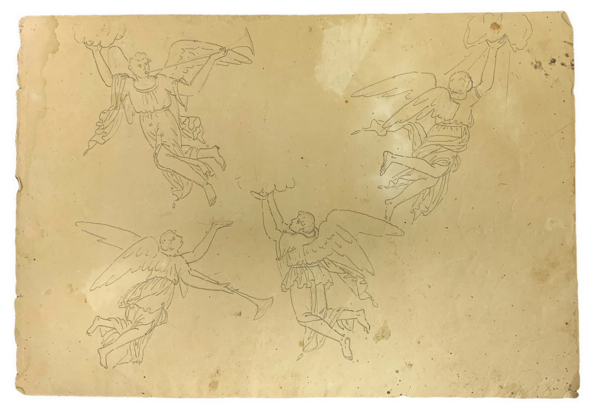 Disegno a china raffigurante quattro angeli “Trombettieriâ€. XIX secolo. Mm 305x205
