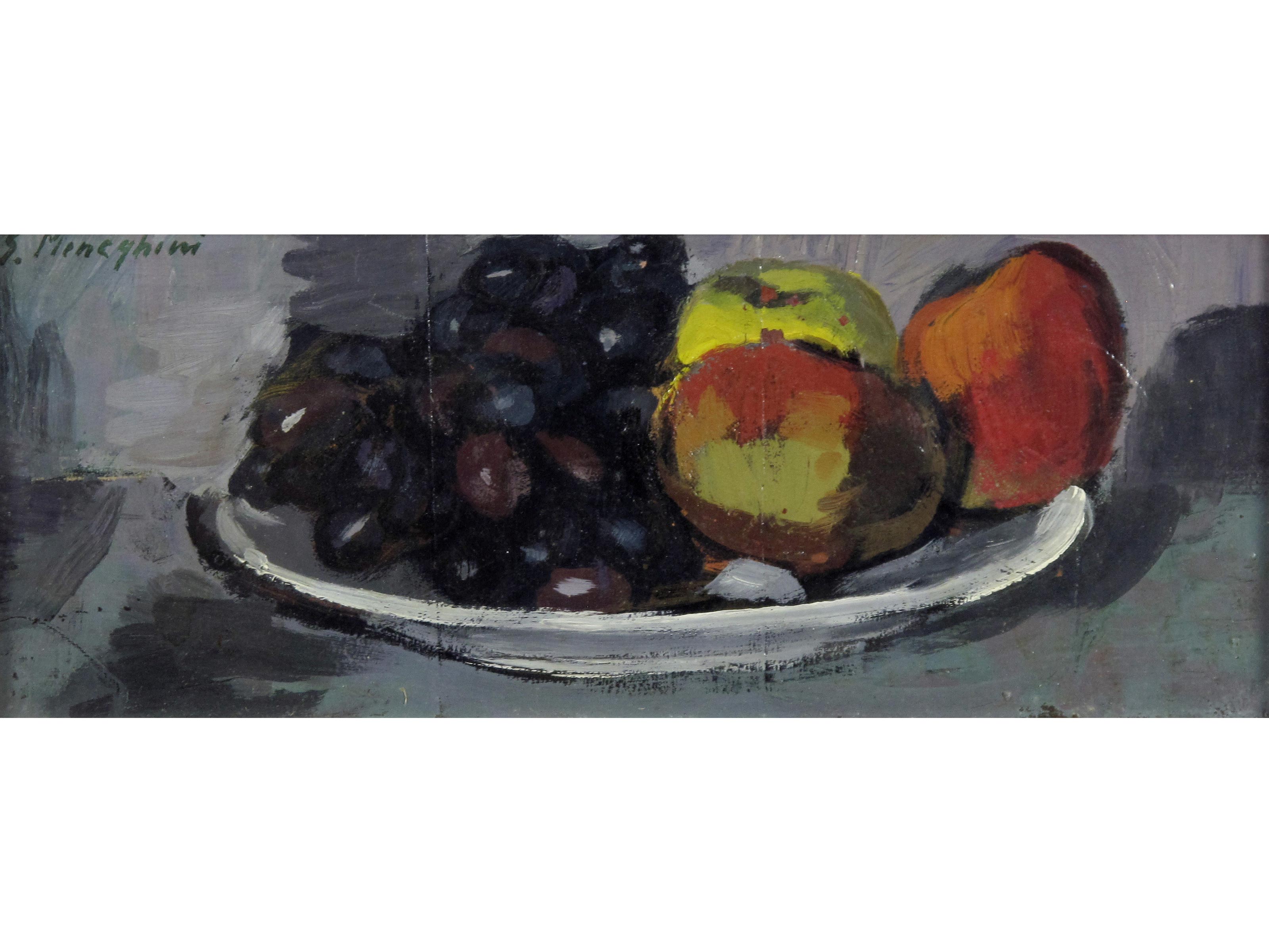 S. Meneghini (XX secolo) Natura morta Olio su tavola Firmato Misure 15.5x38 cm