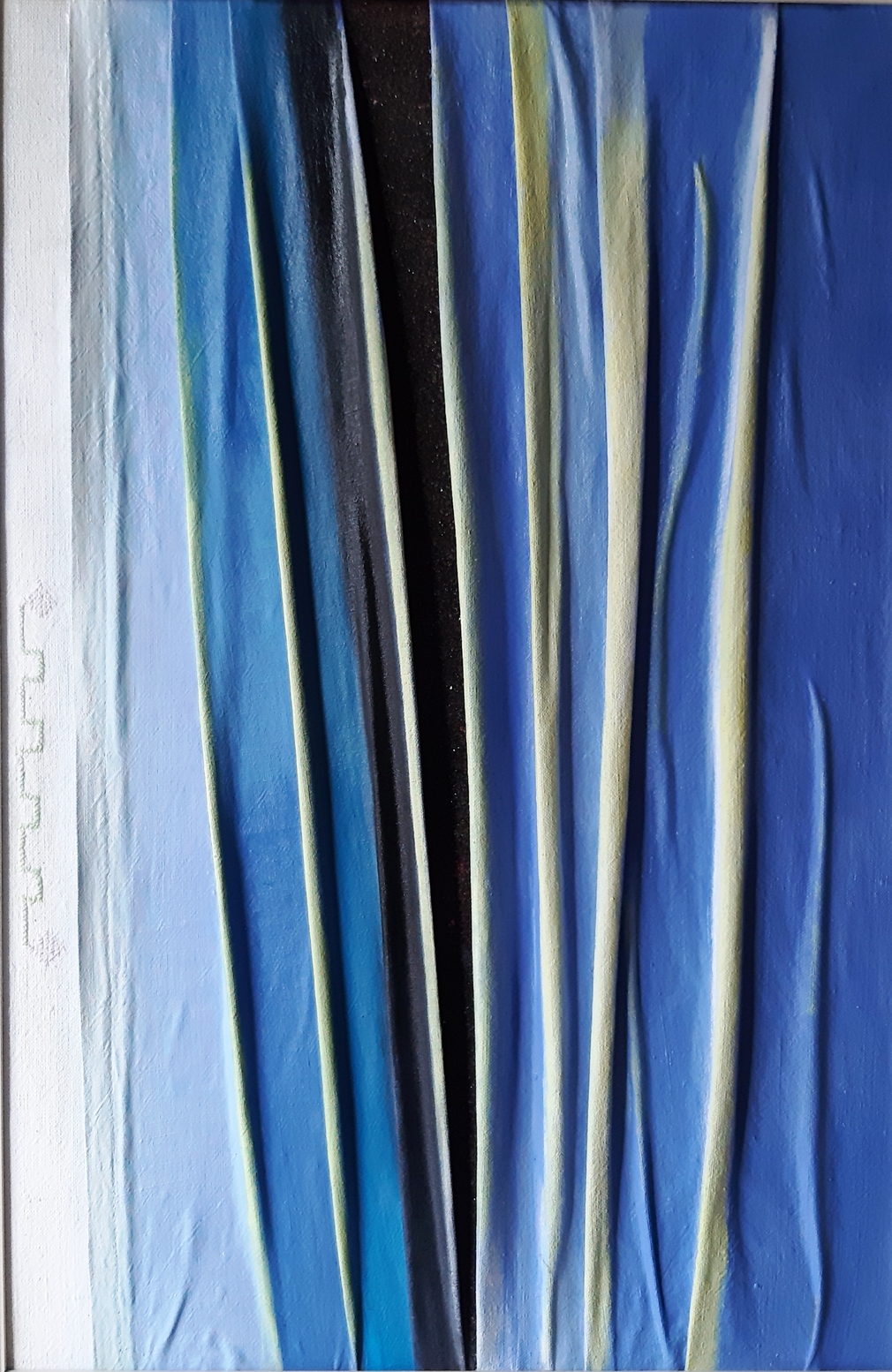 Tela piegata dipinta ad acrilico con innesto di sabbia di Baratti