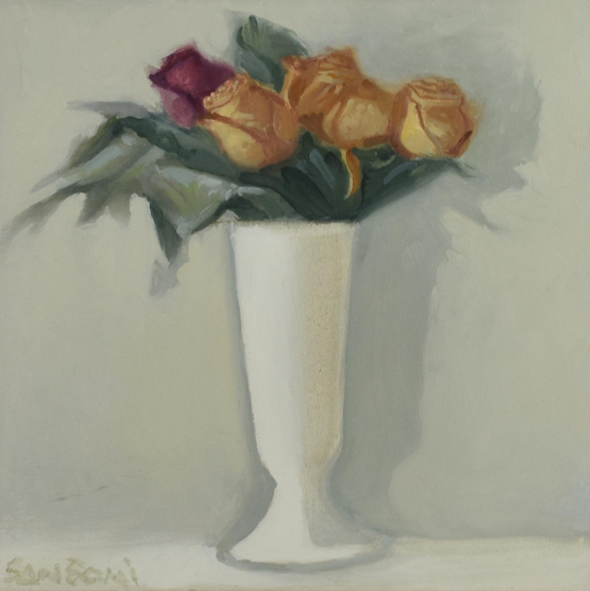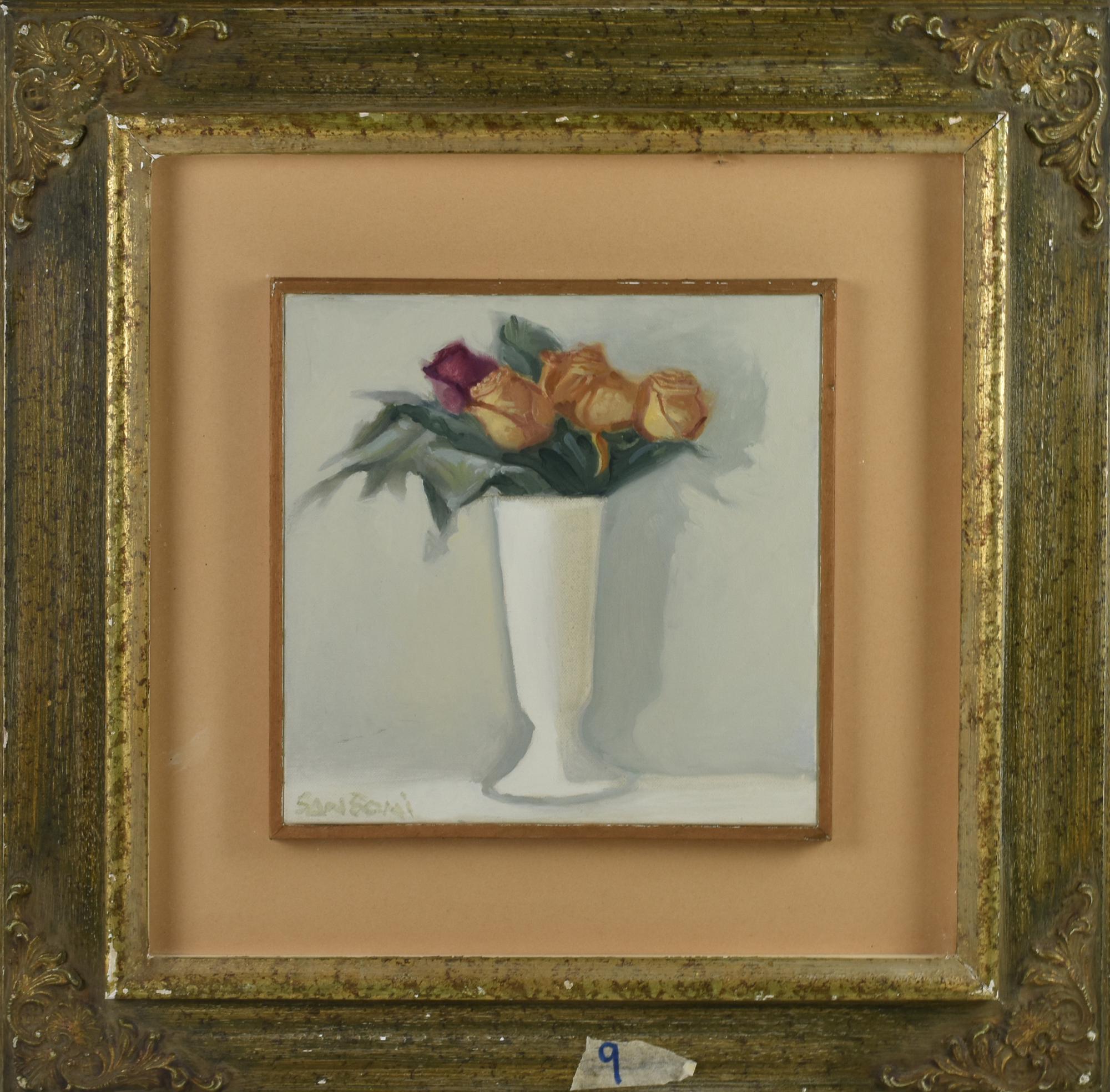 Sansoni VASO olio su tela, 29,5x29,5 firma sul retro: firma e data eseguito...