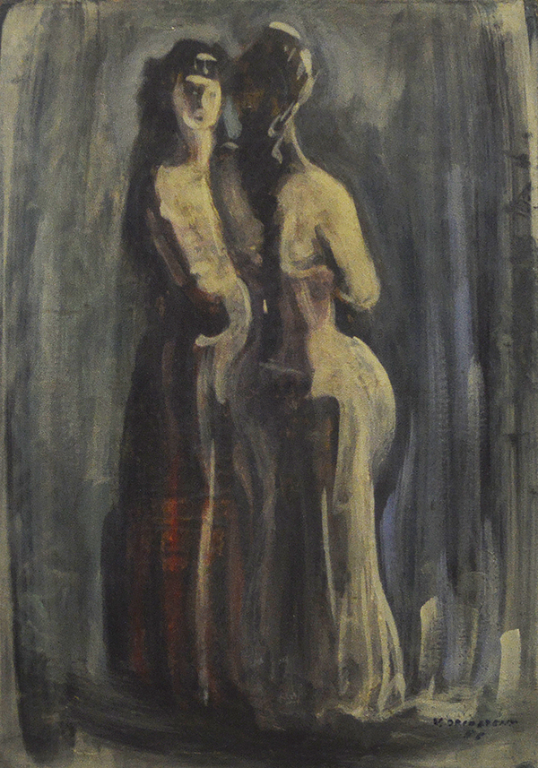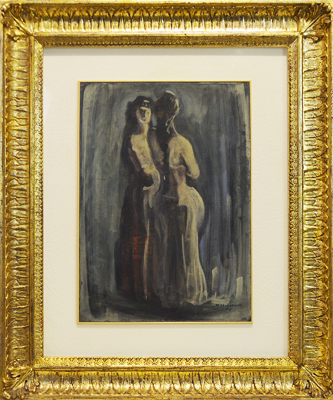 Ignoto FIGURE olio su faesite, cm 44x32 firma e data eseguito nel 1956