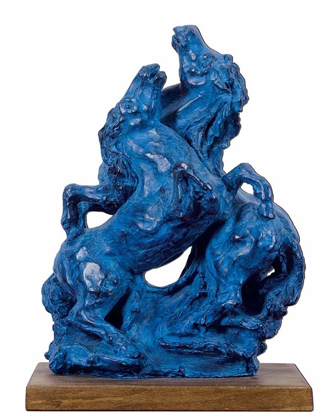 Aligi Sassu Scultura in bronzo 35,5x15 Due cavalli rampanti 1949