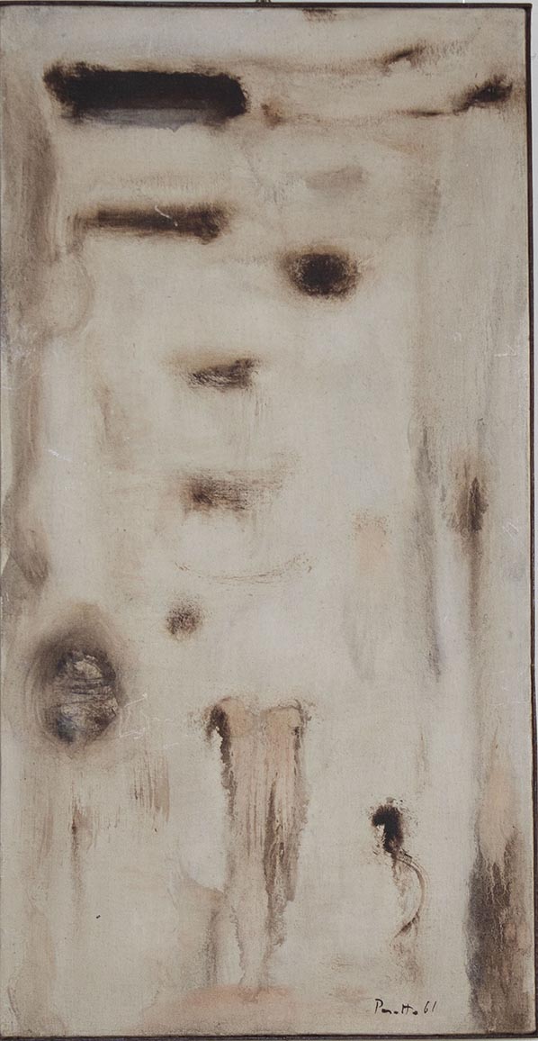 Paolo Pasotto Olio su tavola 60x30 Senza titolo 1961 Autentica dell'artista su foto