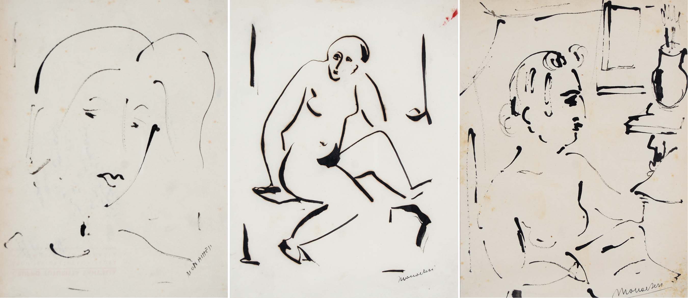 MONACHESI SANTE Roma 1910 - 1991 Figure lotto di 3 disegni a china su carta...
