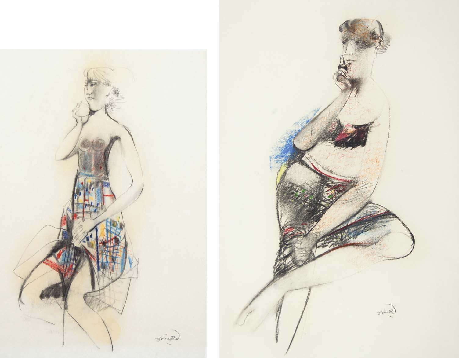DINETTO LINO Este (Pd) 1927 Figure lotto di 2 tecniche miste su carta 65x45 - 95x65 cm entrambe firmate in basso a destra