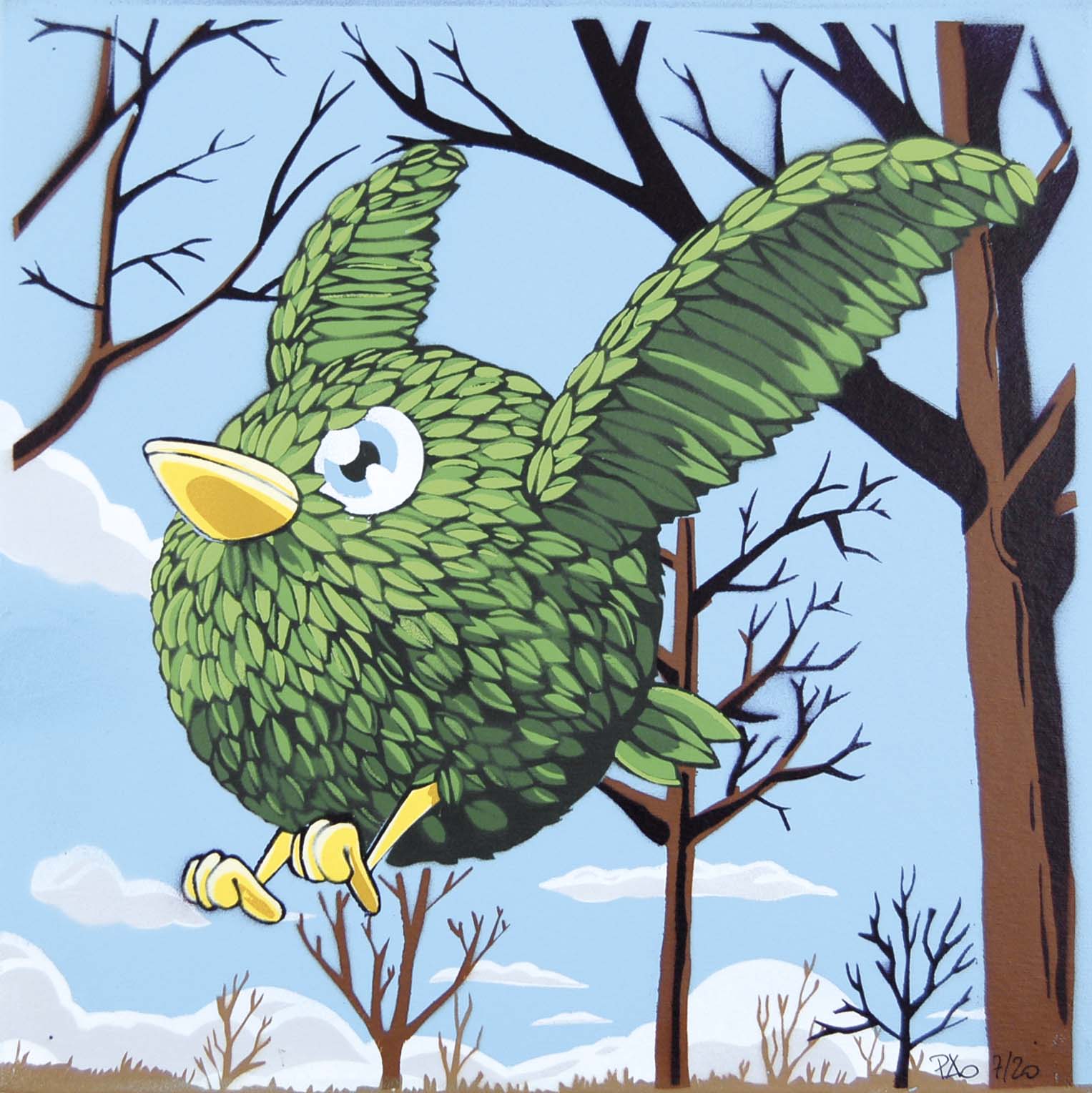 PAO (Paolo Bordino) Milano 1977 L'estate è volata via vernici spray su cartoncino telato es. 7/20 30x30 cm firma e tiratura in basso a destra autentica dell'Autore su certificato di autenticità a cura della Galleria Prospettive d'Arte Milano