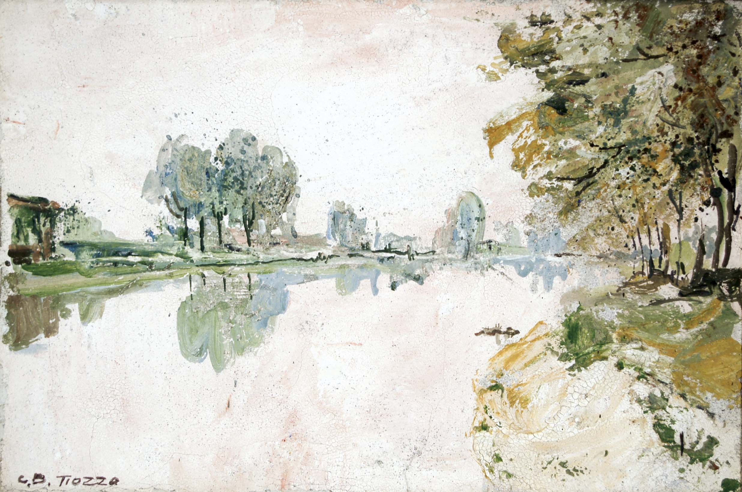 TIOZZO CLAUDIO BENITO Mira (Ve) 1928 Riviera del Brenta affresco su tela 40x60 cm firma in basso a sinistra
