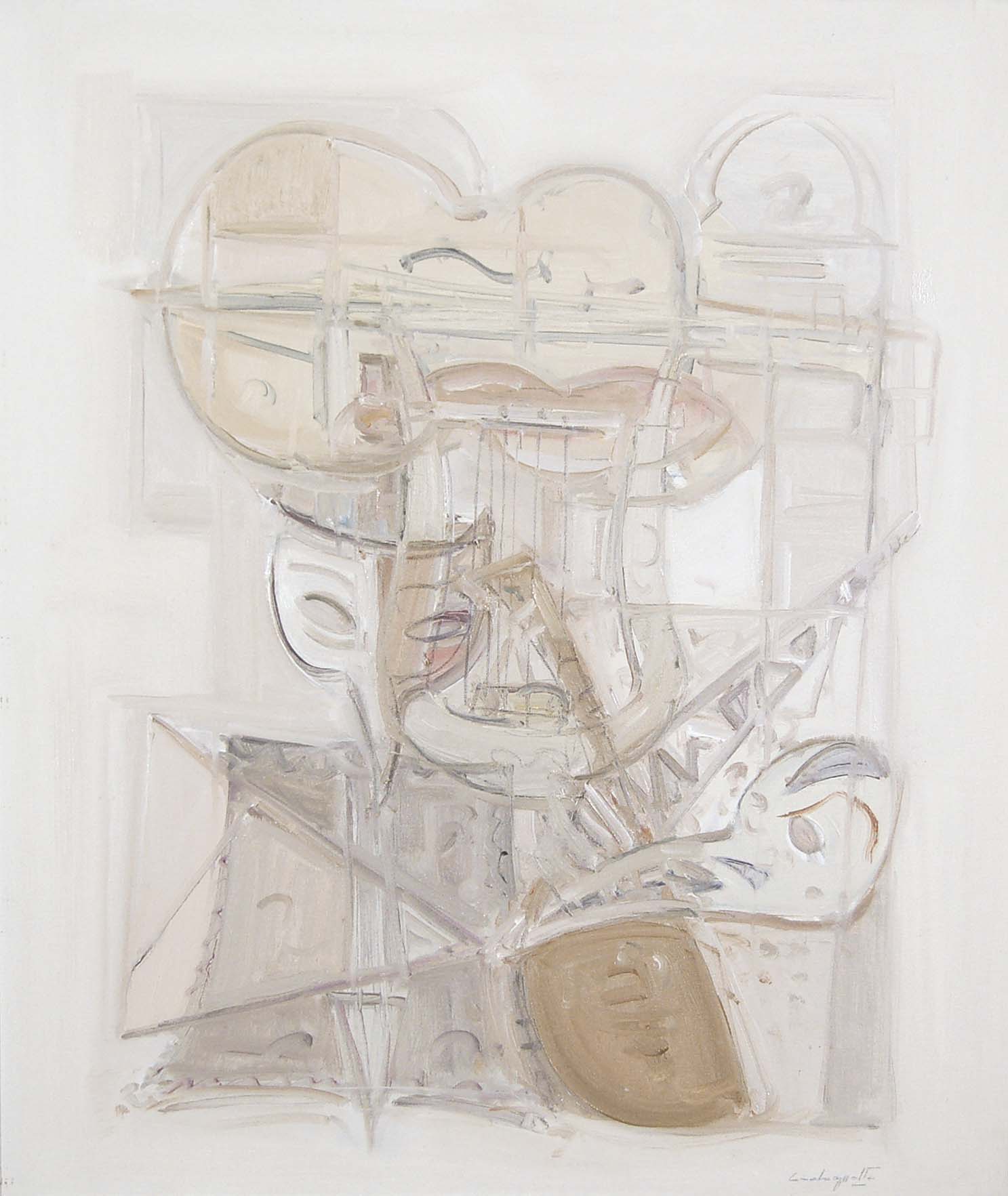 CODOGNOTTO RENZO Cesarolo (Ve) 1938 Composizione con maschere veneziane olio su tela 70x60 cm firma in basso a destra firma e titolo a retro
