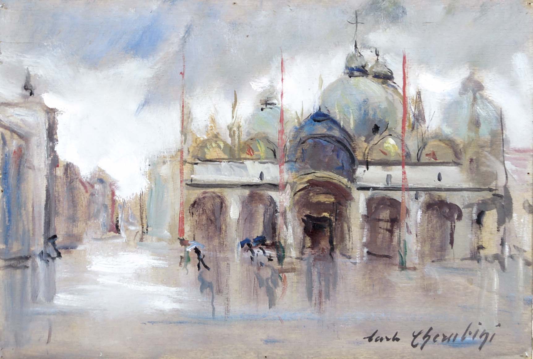 Lotto 77 | CHERUBINI CARLO Ancona 1897 - Venezia 1978 Paesaggio piovoso a San Marco olio...