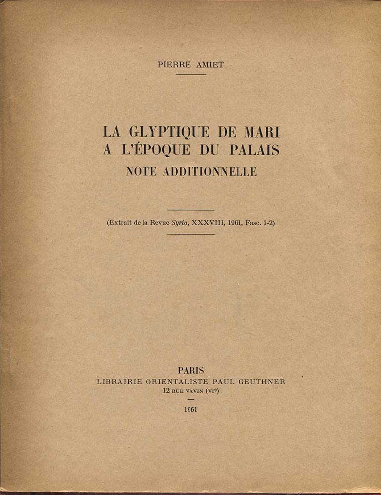 AMIET P. - La glyptique de Mari a l’epoque du Palais. Paris, 1961. Pp. 6, ill. nel testo. ril. ed. buono stato.