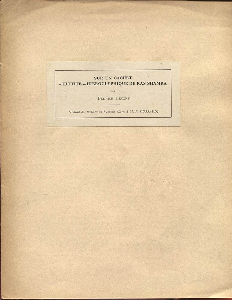 HROZNY B. – Sur un cachet < Hittite> hieroglyphque des Ras Shamra. Bruxelles, s.d. pp. 55 – 57, ill. nel testo. ril. ed. buono stato.
