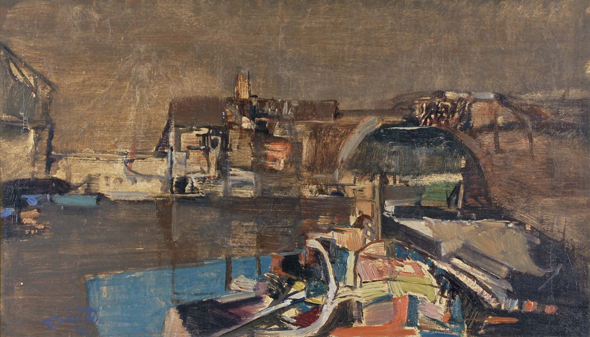 DINETTO LINO Este (Pd) 1927 Paesaggio a Treviso olio su tavola 35x60 cm firma in basso a sinistra