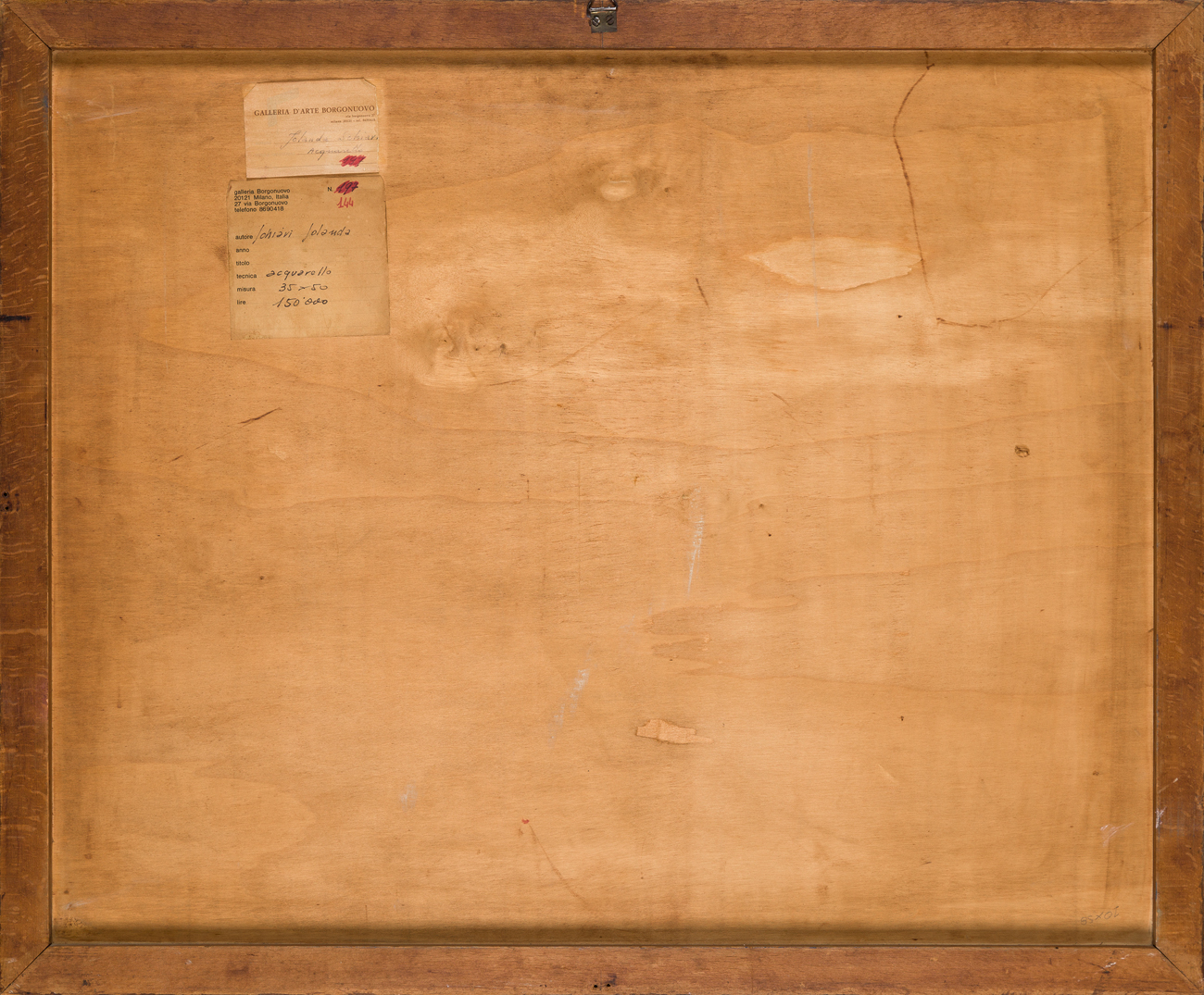 Etichette e timbro della Galleria d'Arte Borgonuovo (MI) al retro