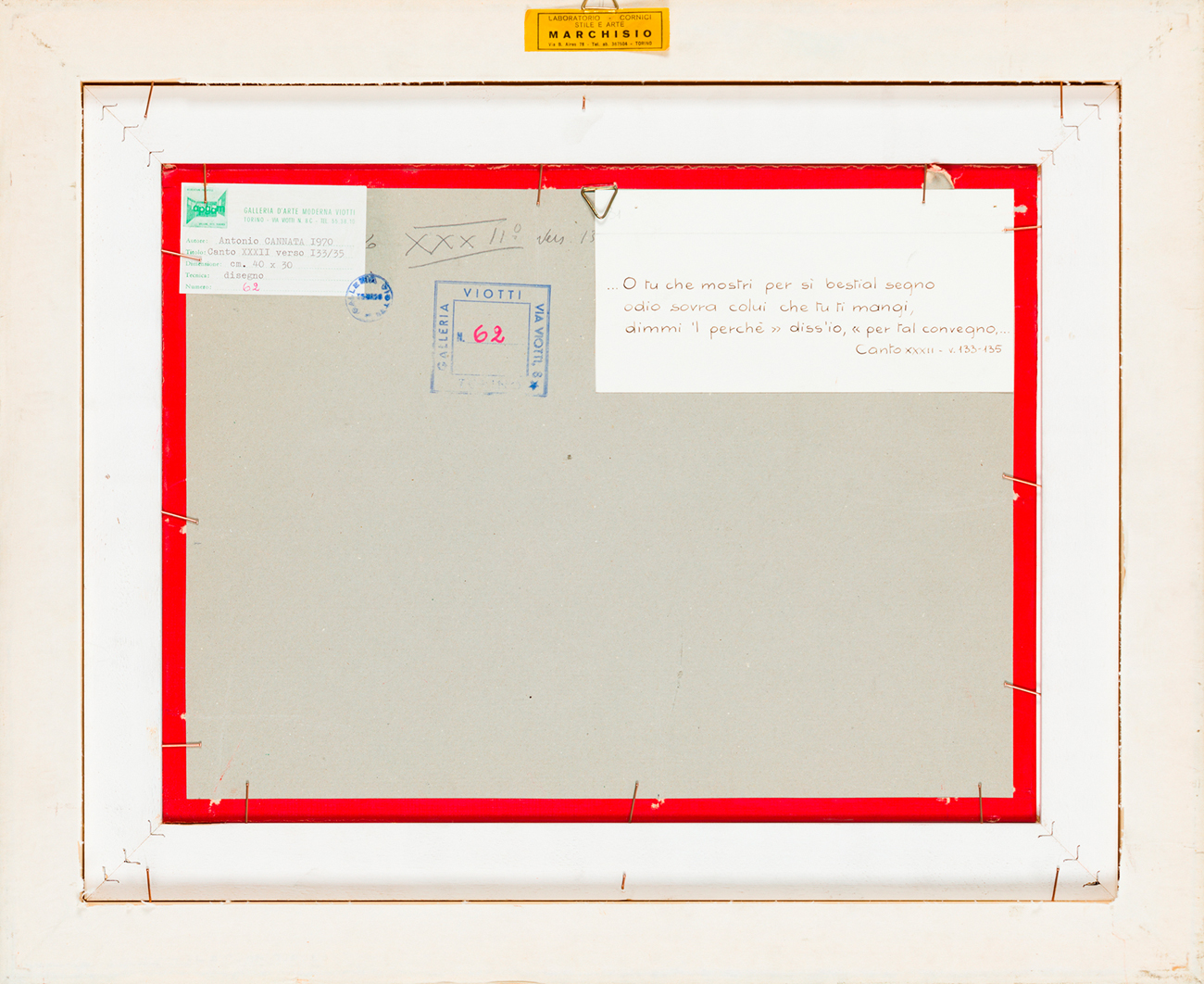 Etichetta e timbri della Galleria Viotti (TO) al retro del cartone protettivo