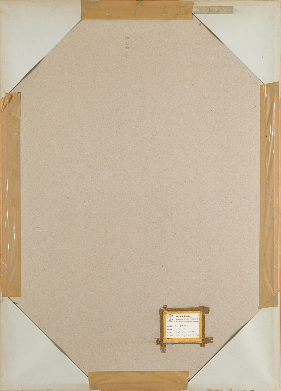 Etichetta della Galleria d'Arte Moderna Tessari (MI) al retro del cartone protettivo