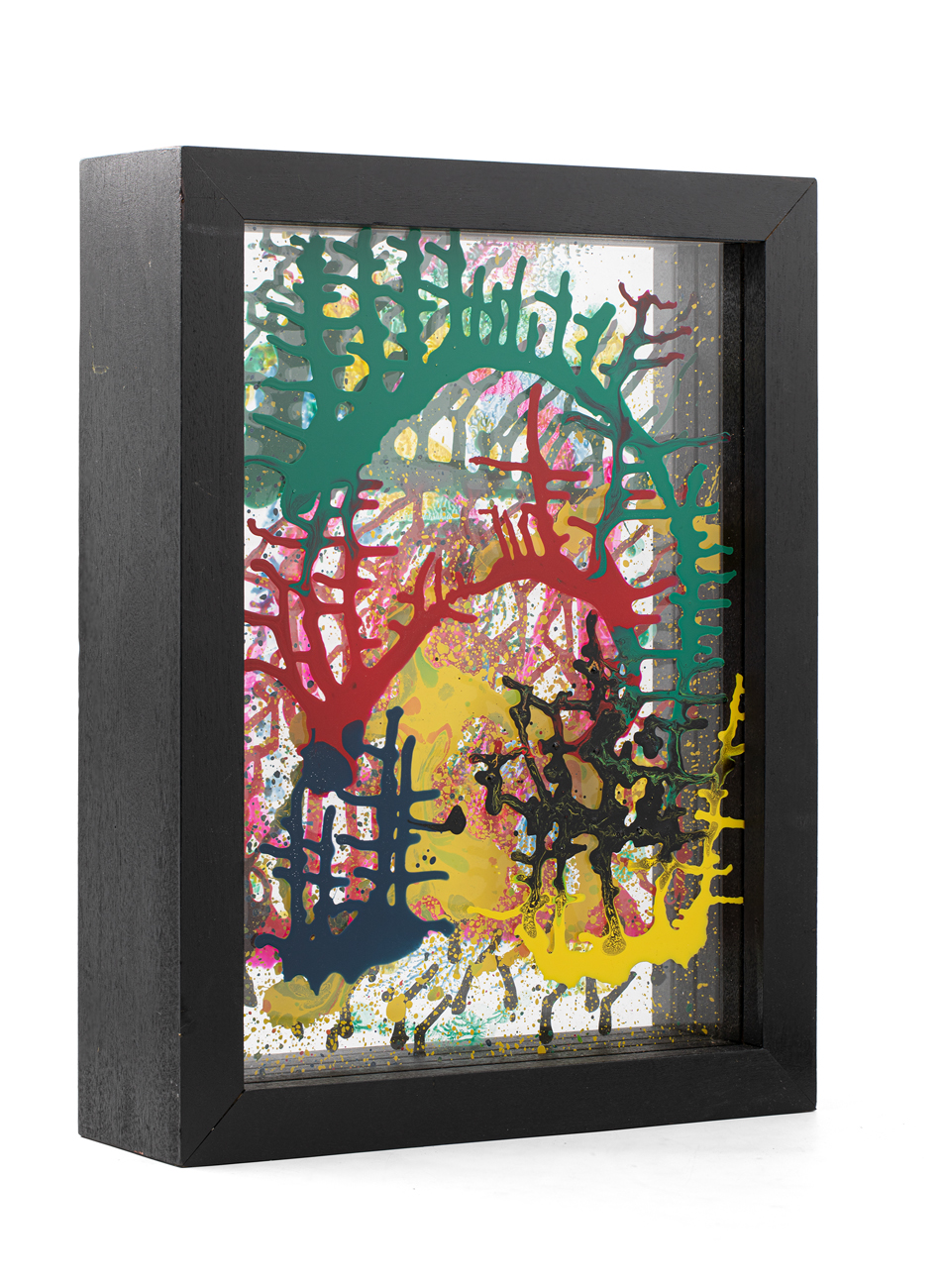 Acrilici su lastre si plexiglass sovrapposte entro box di legno