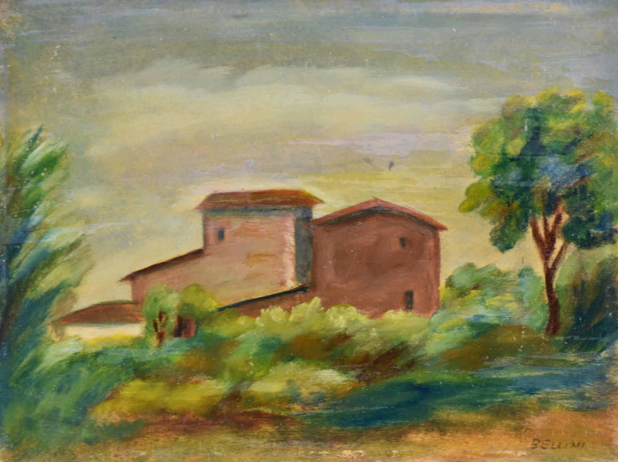 Lina Bellini CASOLARI olio su cartone, cm 18x24 firma