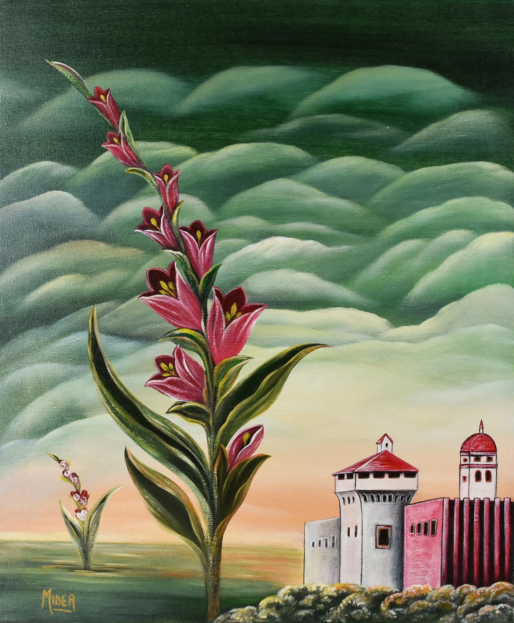 Midea ROMANTICISMO olio su tela, cm 60x50 firma sul retro: Certificato di...