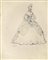 Ignoto STUDIO PER ABITO FEMMINILE matita e china su carta, cm 23x18 sigla...