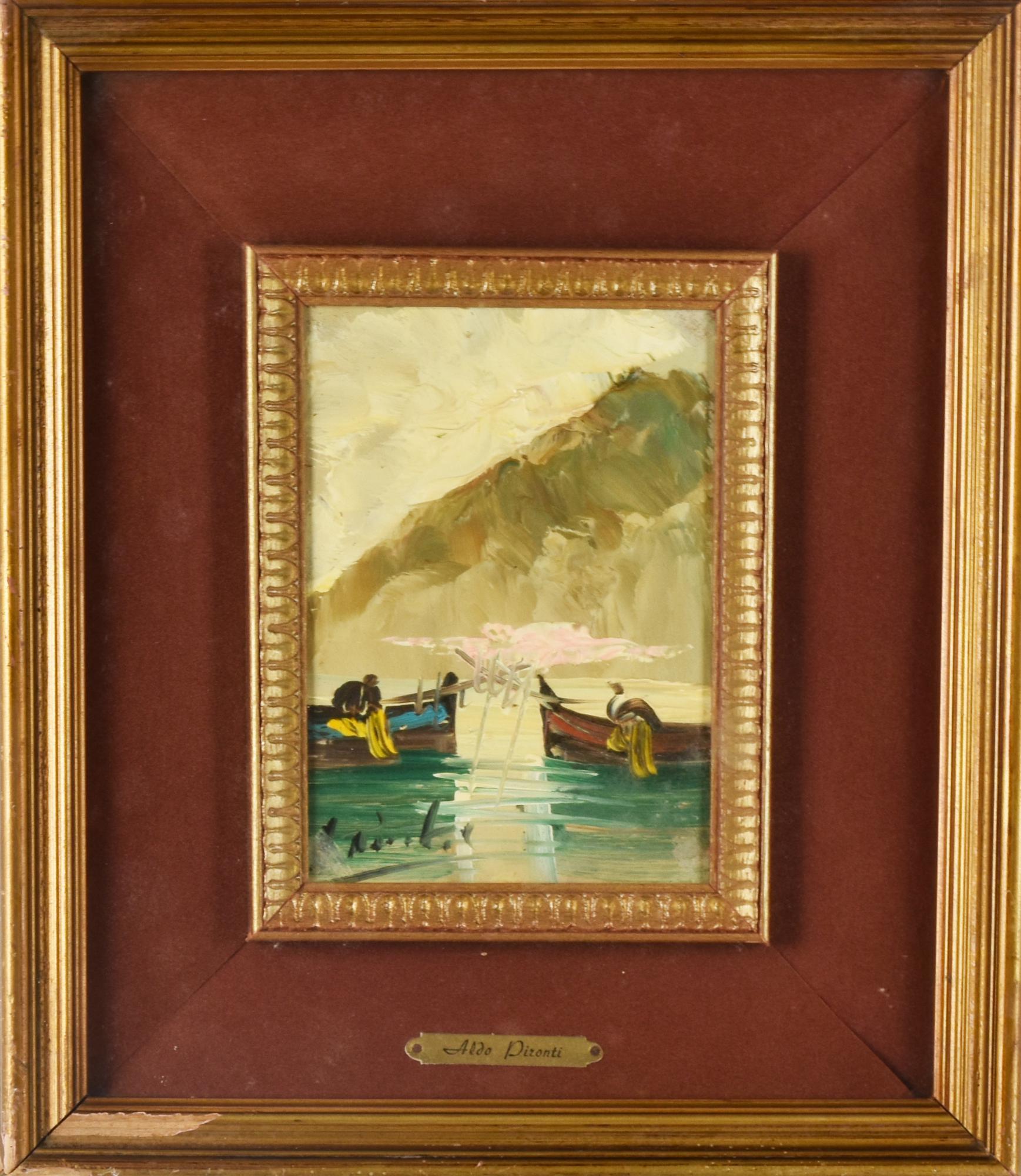 Lotto 100 | Aldo Pironti LA PESCA olio su masonite, cm 18x13 firma
