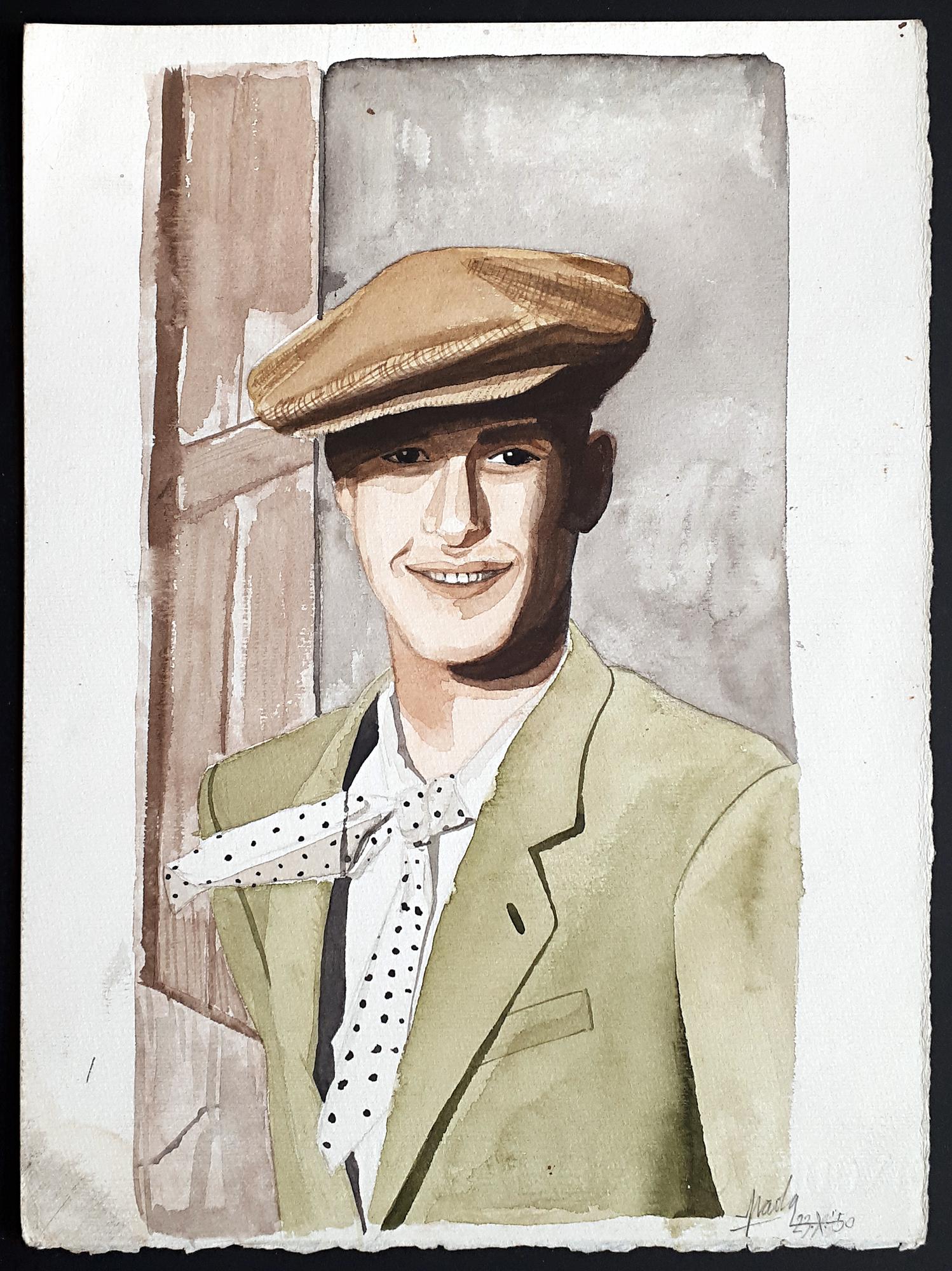 Lotto di 5 acquarelli: RITRATTO MASCHILE acquarello su carta, cm 28,5x21...