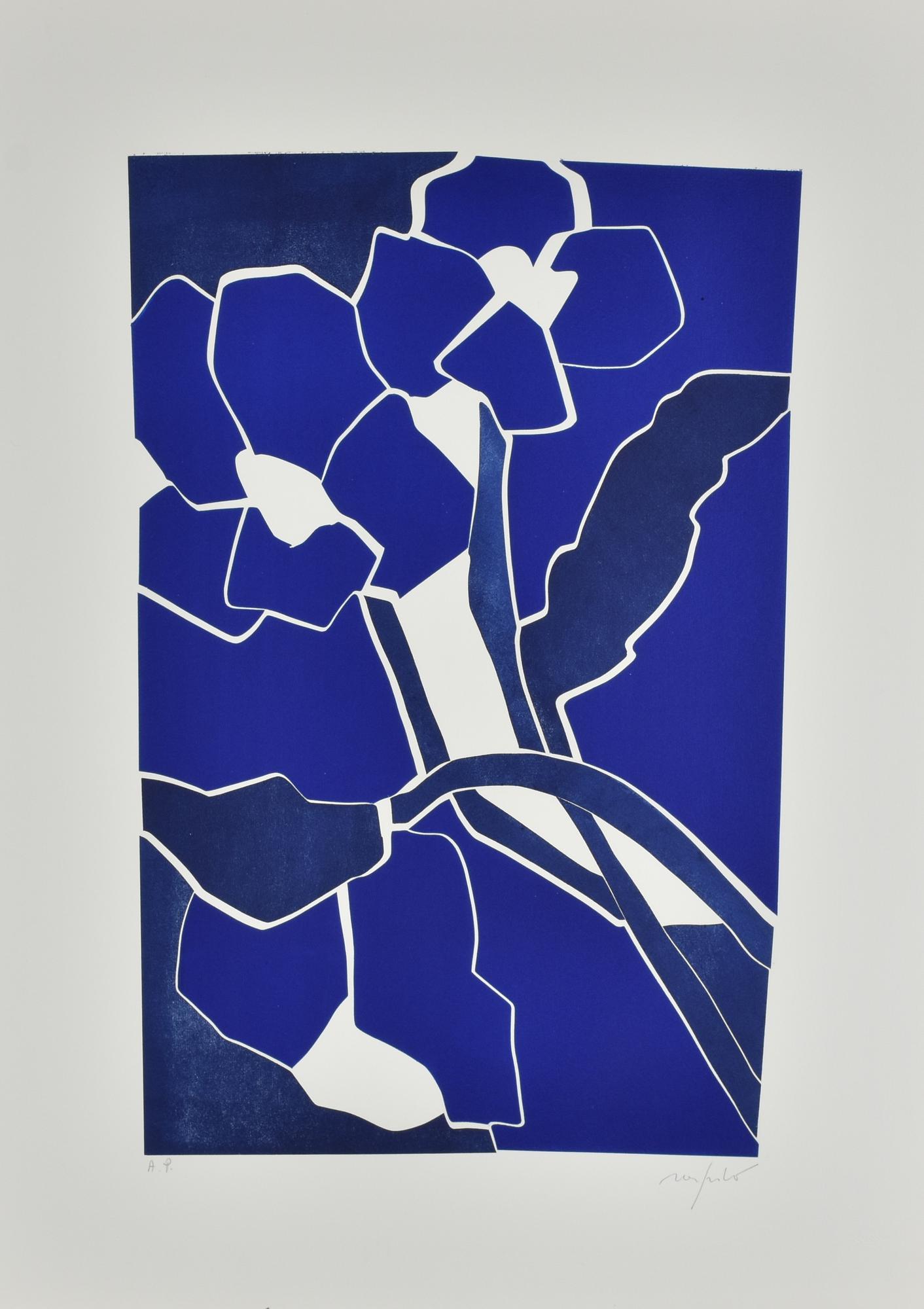 Lotto 9 | Ugo Nespolo FIORI BLU incisione su carta, battuta cm 51x32,5, su foglio cm...