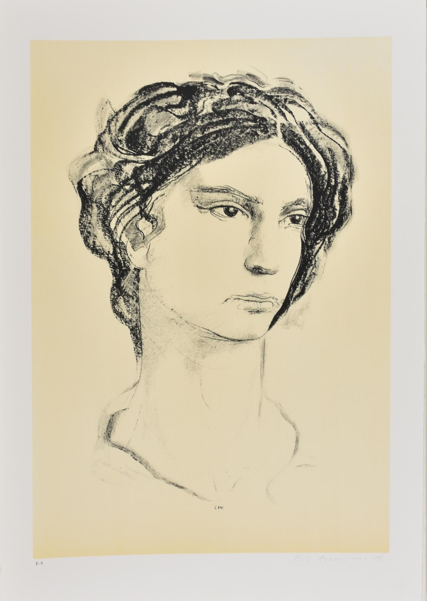 Pietro Annigoni RITRATTO litografia su carta, cm 70x50; es. prova d'autore firma
