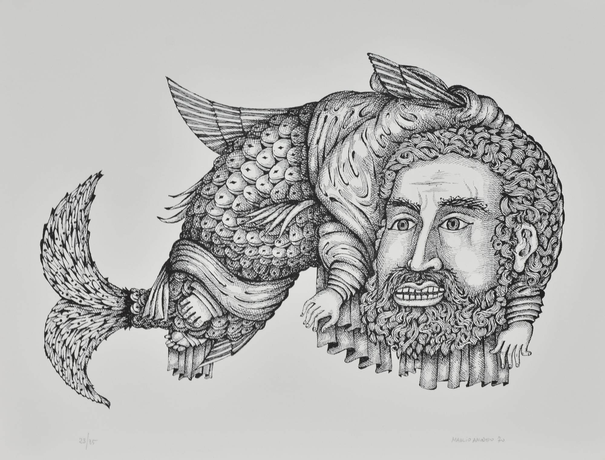 Manlio Amodeo PESCE GUERRIERO litografia su carta, cm 50x65 esemplare 23 su...