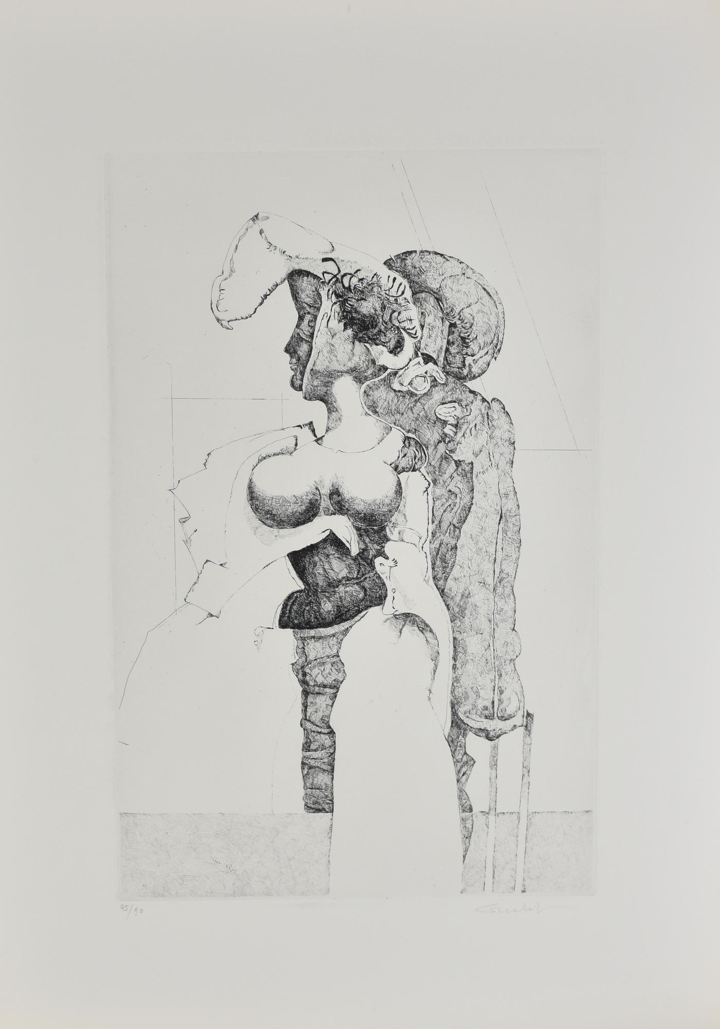 Imer Guala SULLA DONNA acquaforte su carta, battuta cm cm 50x32, su foglio cm...
