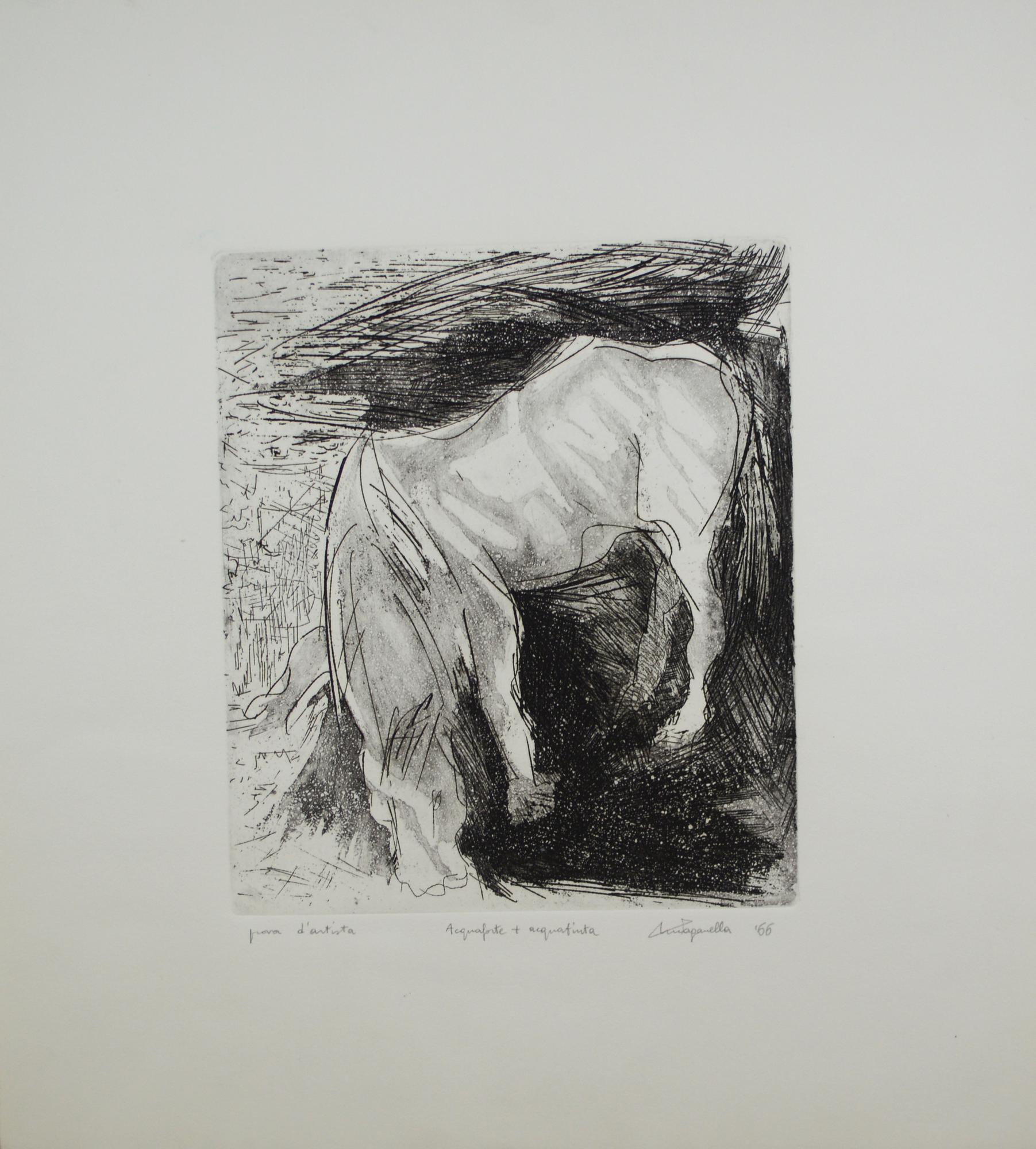 Ignoto CAVALLO acquatinta-acquaforte, cm 28x24, foglio cm 50x44,5; p.d.a....