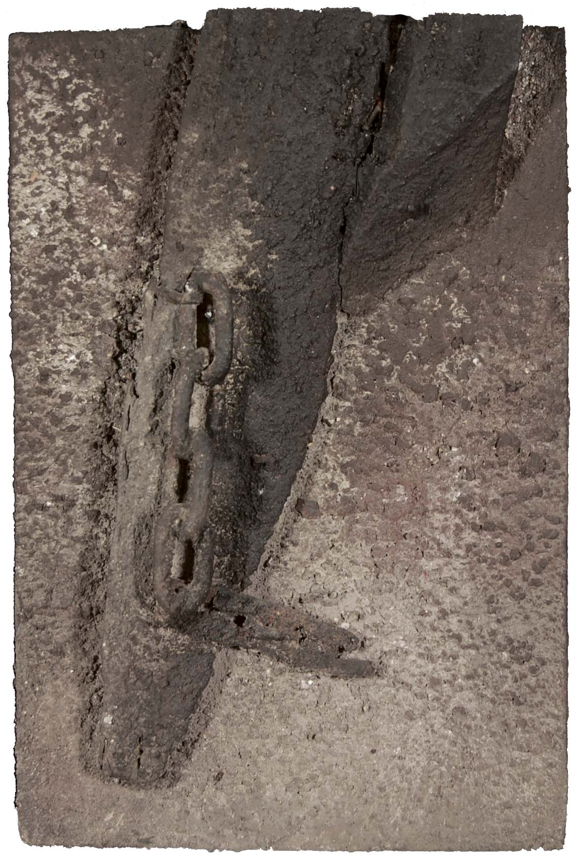 BORTOLUZZI FERRUCCIO Venezia 1920 - 2007 senza titolo assemblaggio di legno ferro sabbia e ghiaia su tavola 30x21x4 cm firma al retro