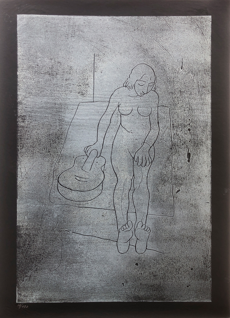 - Nudo con chitarra, 1963: gipsografia - Lastra cm 30,4x45 (Esemplare 19/120)