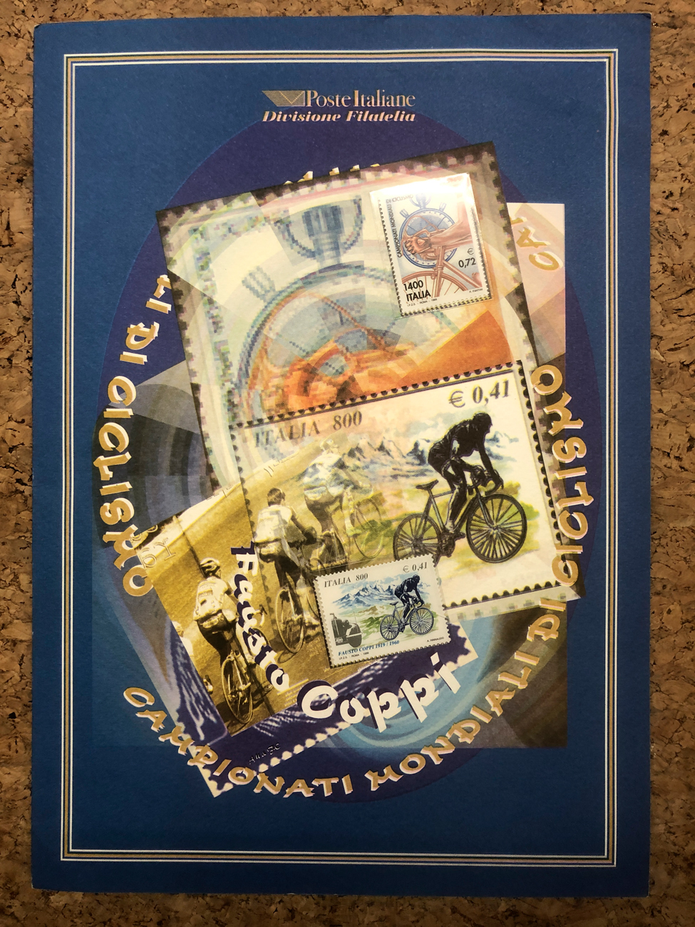 - Folder originale edito per i Campionati Mondiali di Ciclismo contenente francobollo celebrativo di Fausto Coppi edito nel 1999