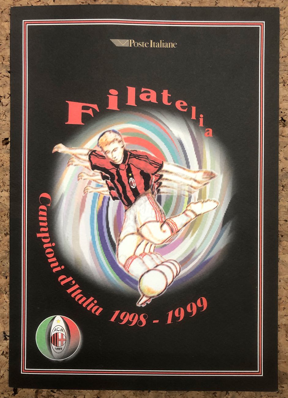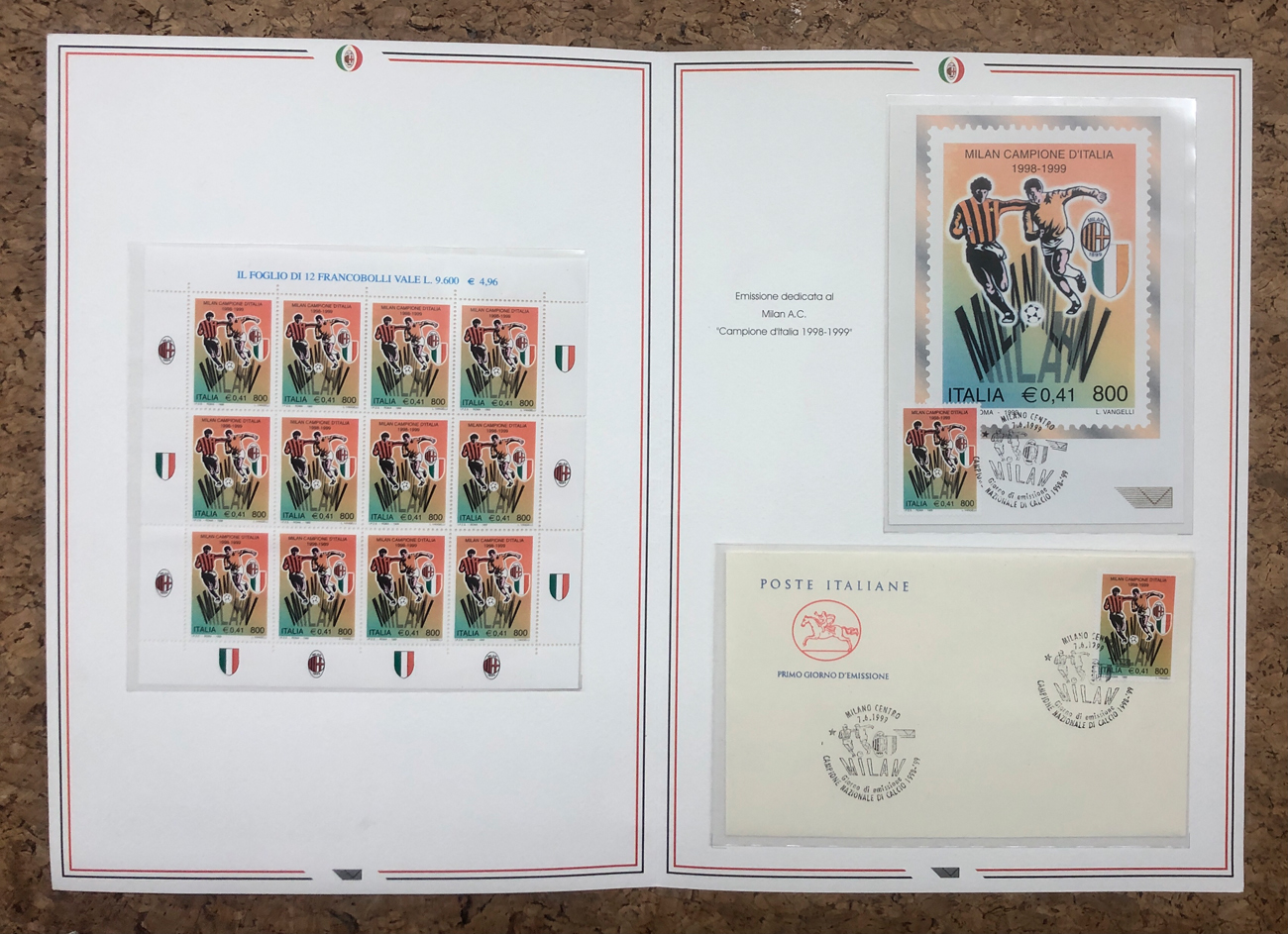 - Folder originale contenente foglio da 12 francobolli: emissione dedicata al Milan A.C. Campione d'Italia 1998-1999, 1999