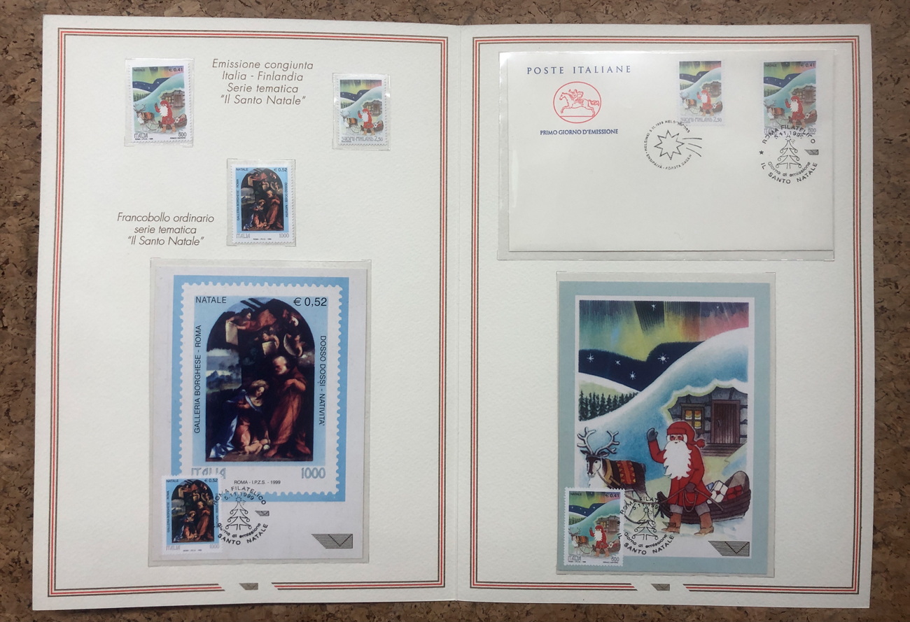 - Folder originale contenente francobollo ordinario serie tematica 'Il Santo Natale' e emissione congiunta Italia - Finlandia serie tematica 'Il Santo Natale', 1999
