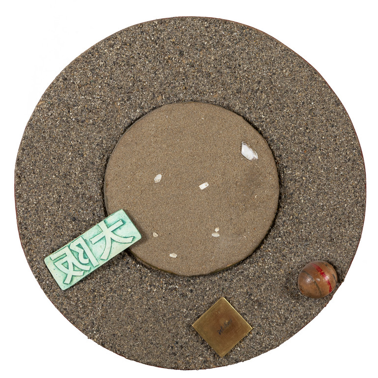 sand cork plaster gold foil acrylic on wood Ø 15 74 in