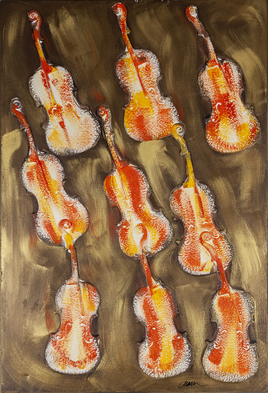 relief violin in pressed cardboard on board 59 05x39 37 in