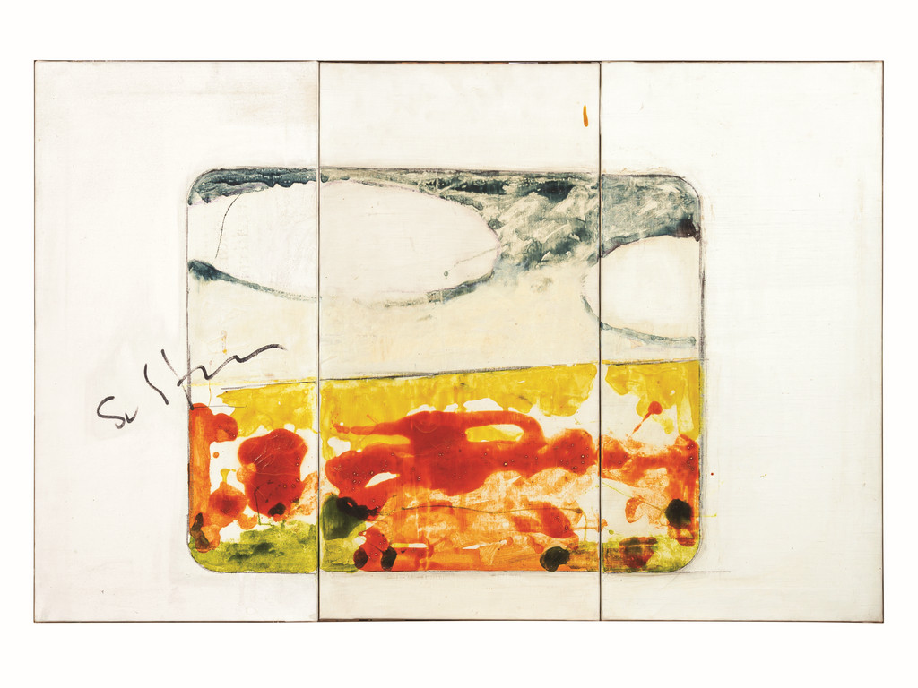 enamel and graphite on canvas (triptych) 24 01x35 43 in