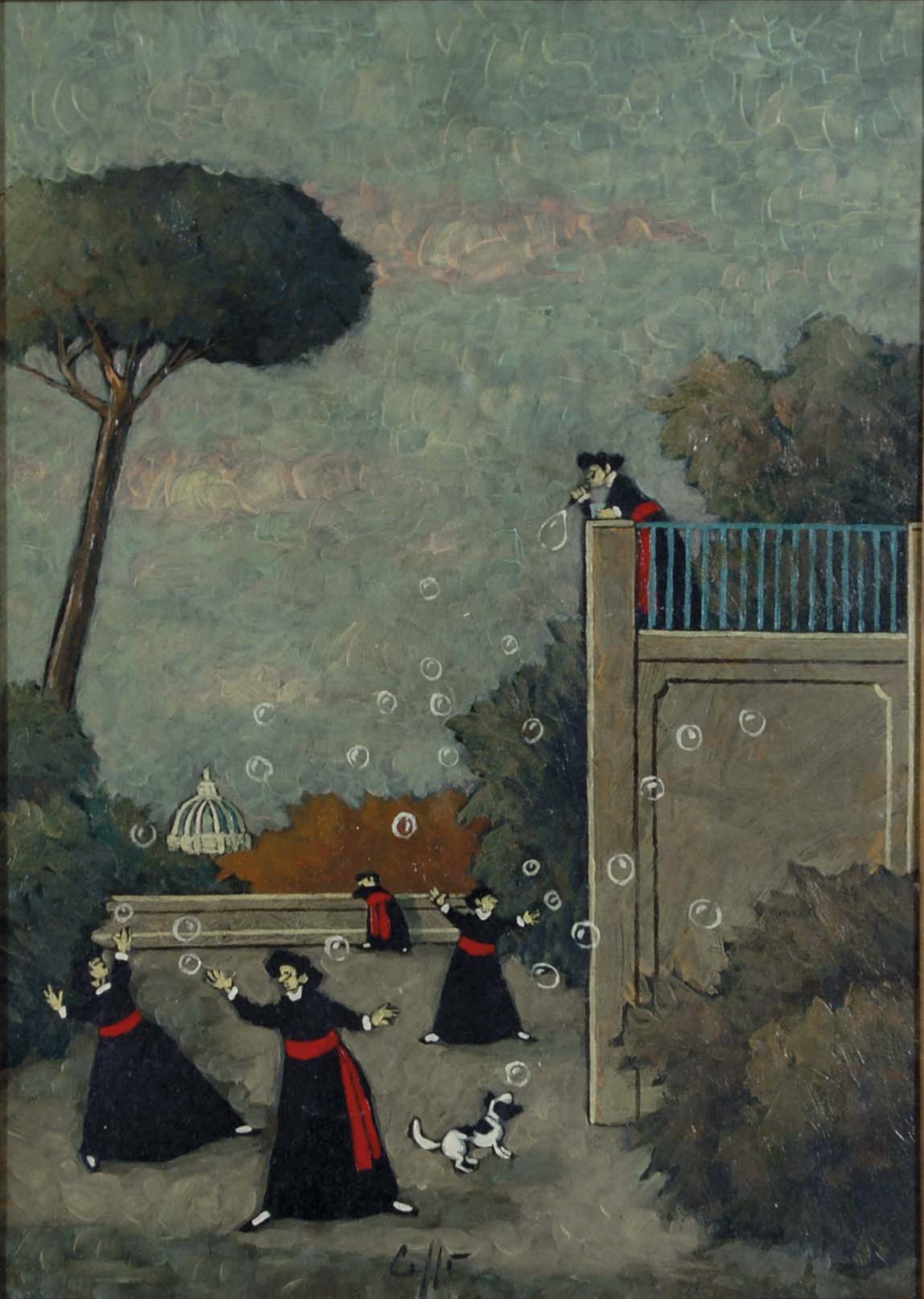 CAFFE' NINO Alfedena (Aq) 1909 - Pesaro 1975 Bolle dal terrazzo 1970 olio su...