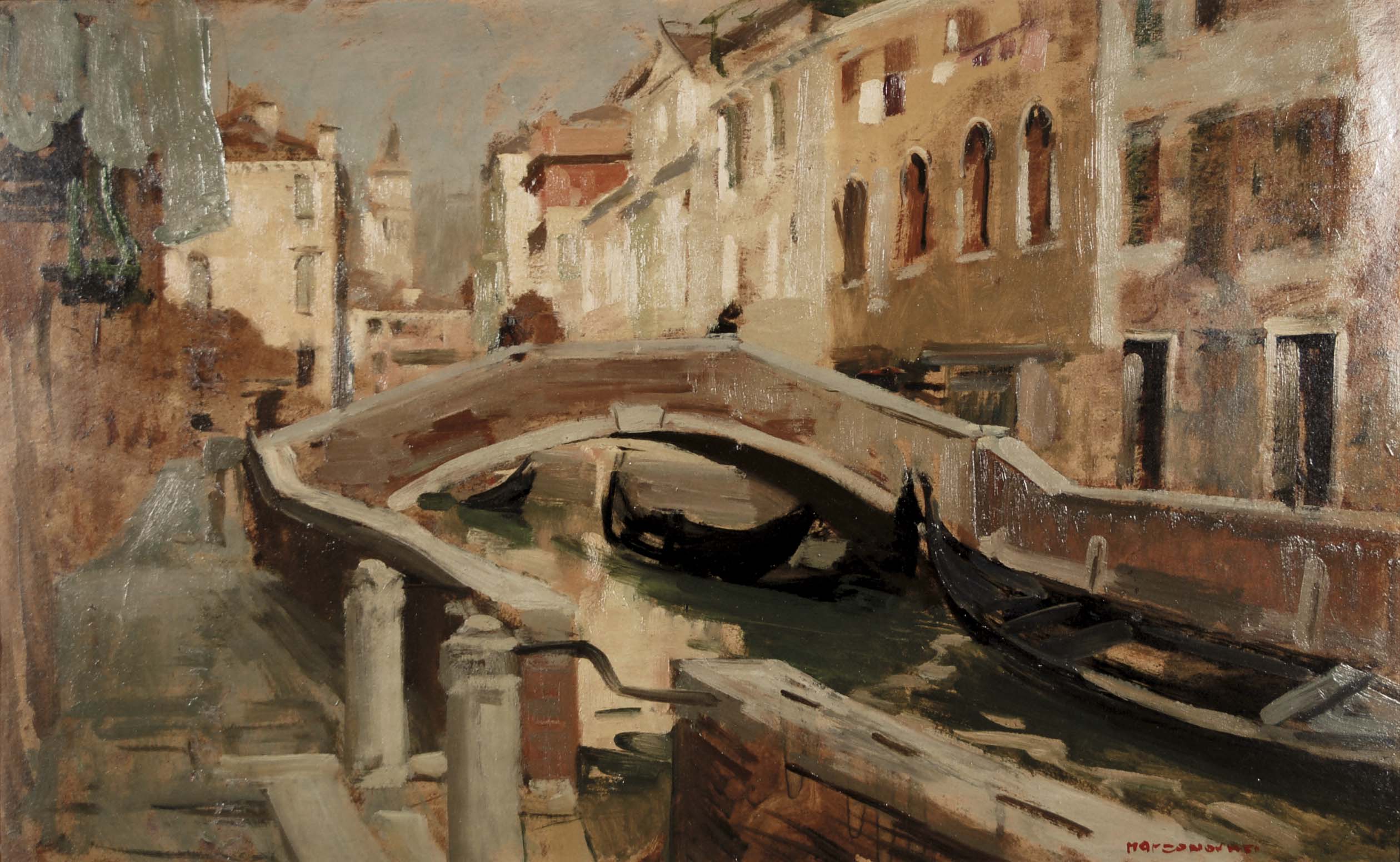 NOVATI MARCO Venezia 1895 - 1975 Canale veneziano olio su tavola 44x70 cm...
