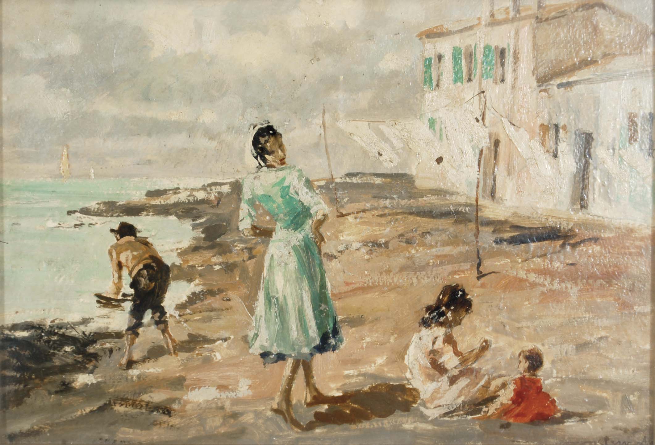 PRIVATO COSIMO Venezia 1889 - 1971 Chioggia olio su masonite 33x48 cm firma...