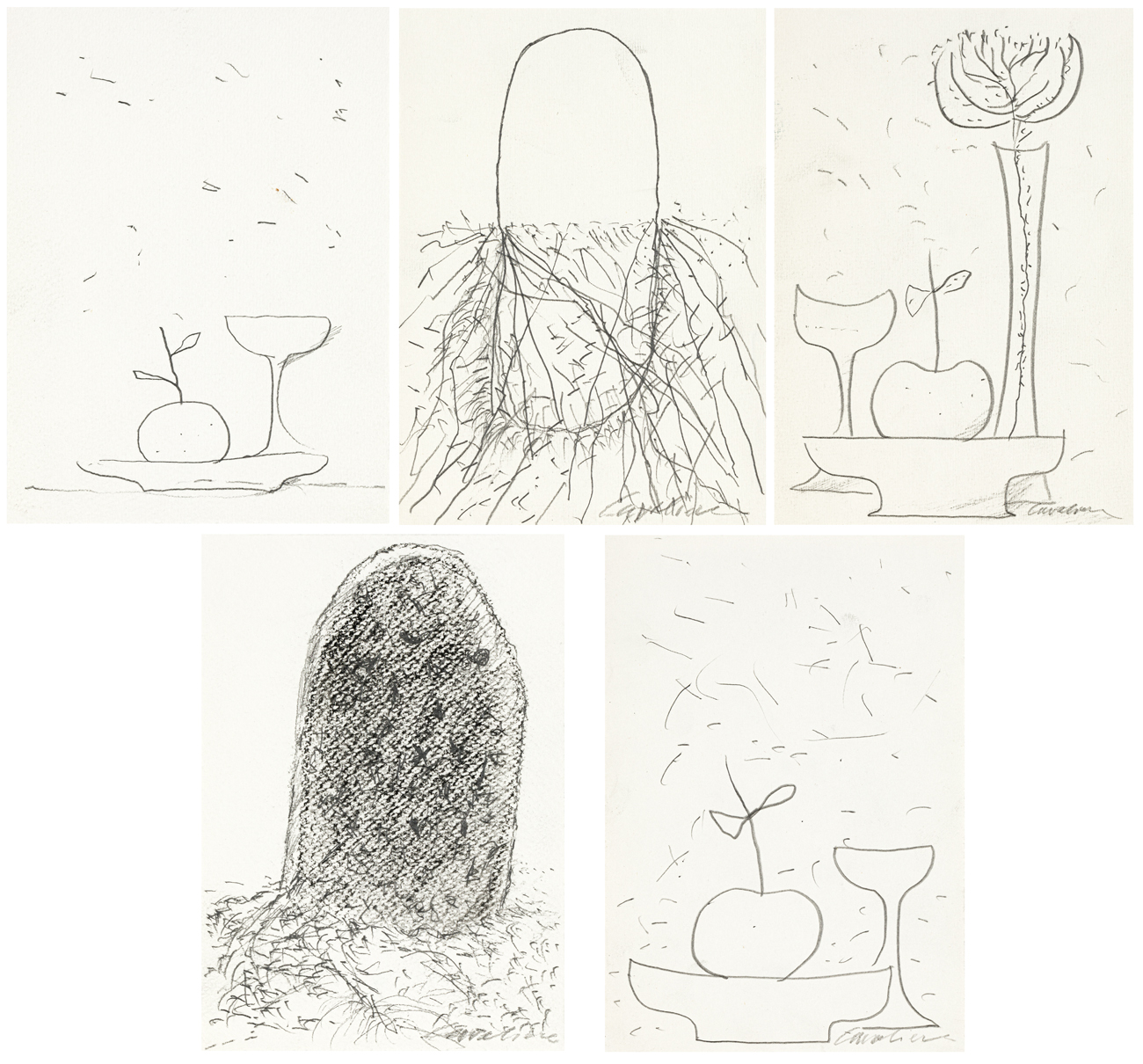 Lotto unico composto da 5 matite su carta