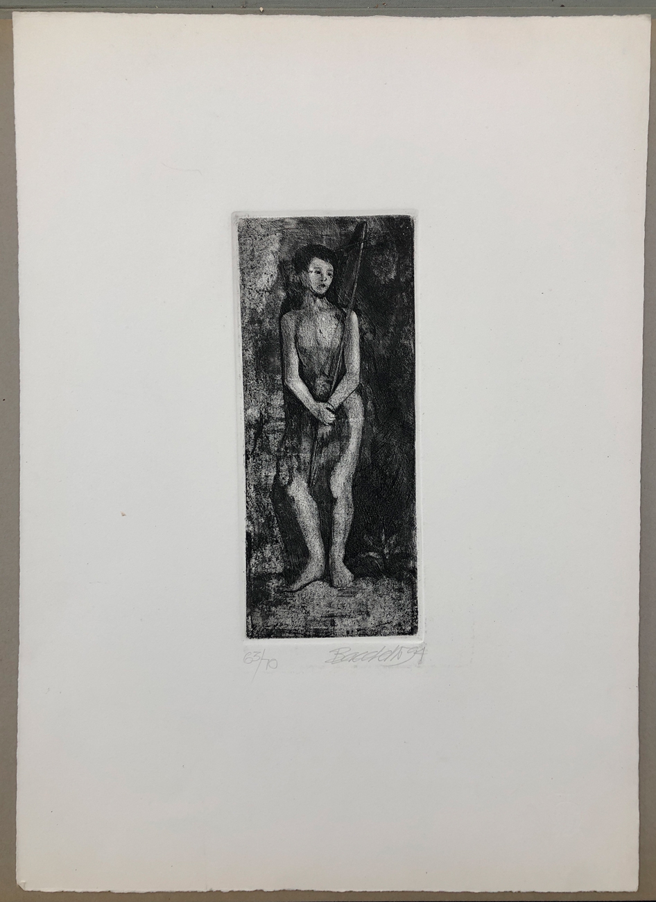 - Lucia Bacchelli. San Giovanni. Incisione, cm 46x33, firma, datazione 1994 e numerazione 63/70) a matita al fronte. Certificato Il Bisonte