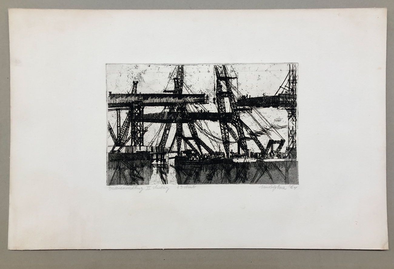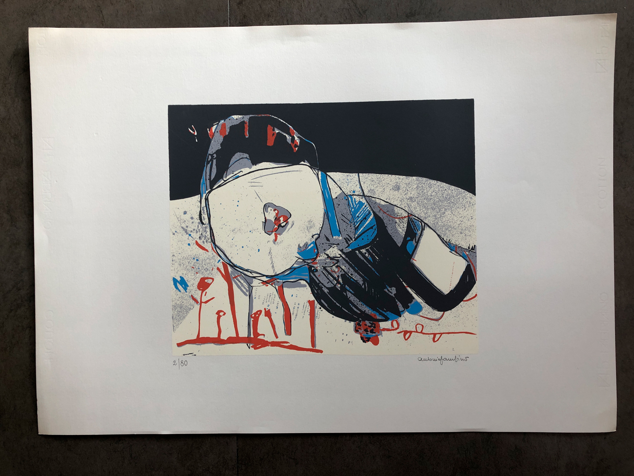 - Roberto Ercolini. Incisione, cm 36x26, firma, datazione 1976 e numerazione 5/30 a matita al fronte. Entro folder