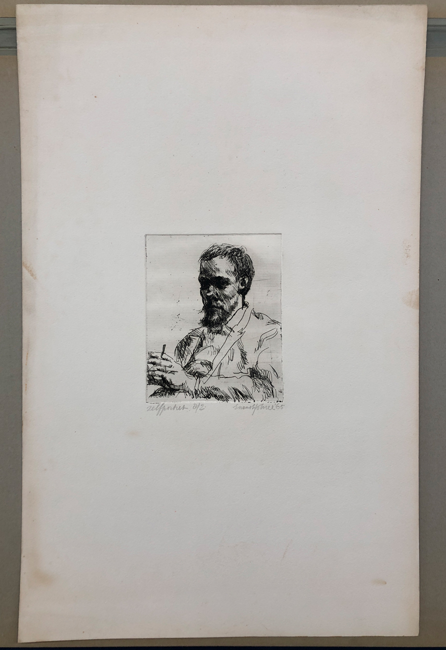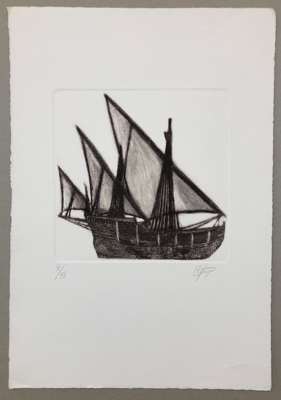 - Renato Volpini. Acquaforte su pieghevole augurale, cm 25x17,5, firma e dedica per il Natale 1959