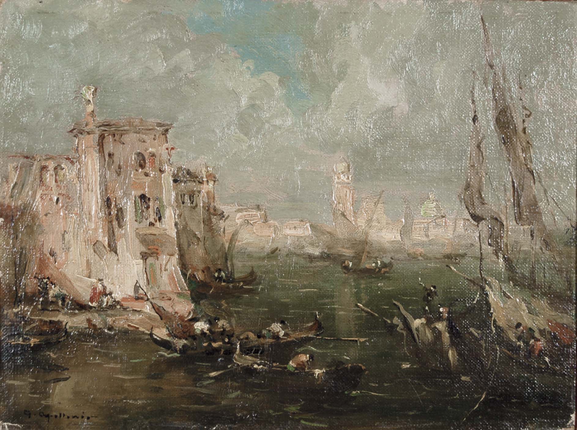 APOLLONIO GIOVANNI Treviso 1879 - 1930 Regata settecentesca olio su cartone...