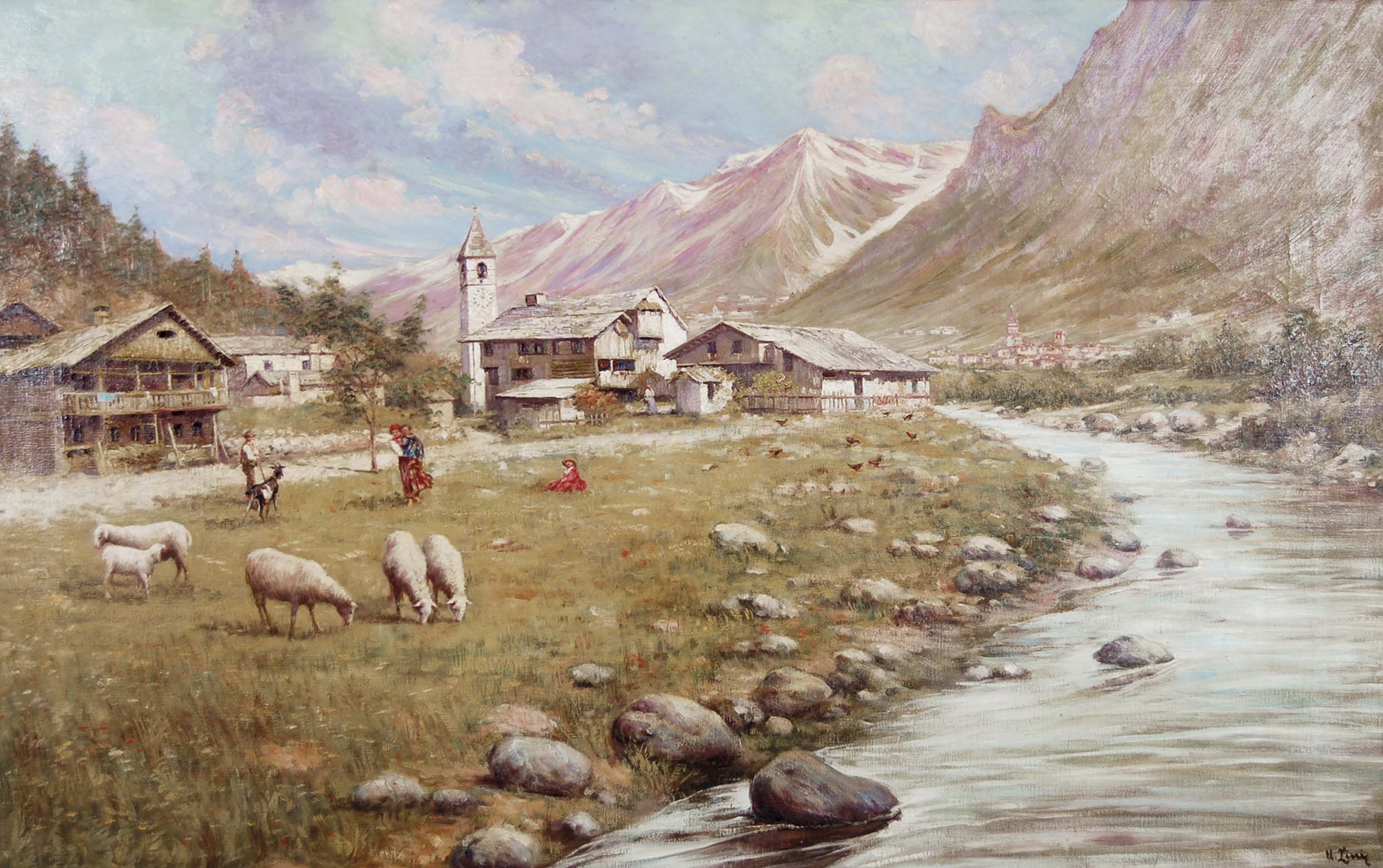 ZINI UMBERTO Padova 1878 - 1964 Paesaggio montano olio su tela 85x130 cm...
