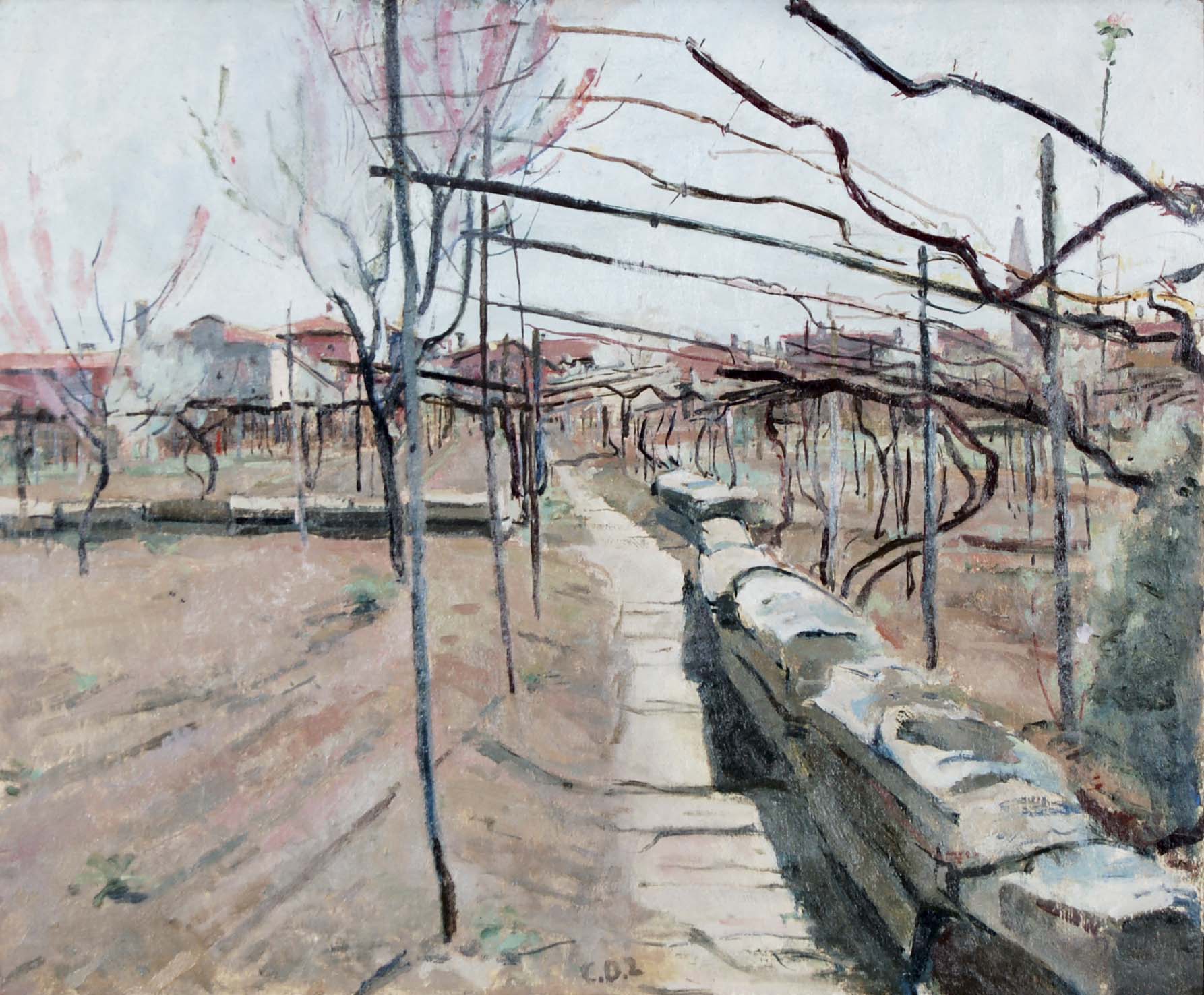 DALLA ZORZA CARLO Venezia 1903 - 1977 Controluce in primavera olio su tela...